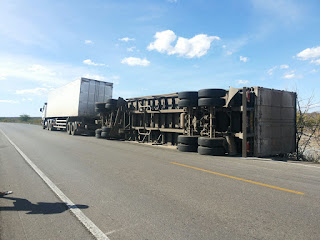 Hoje por volta das 13h00m uma carreta tomba na BR 116 nas proximidades da localidade fazenda lagoa Nova Município de Chorrochó. A carreta vinha de Goiás com destino a Juazeiro do norte-CE, a veiculo estava carregada de Creme de Leite. Não há informações de feridos.