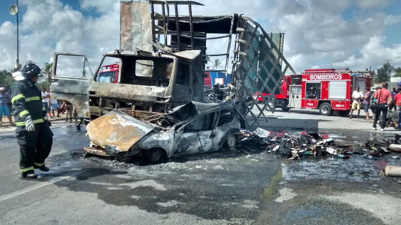 Um acidente entre um caminhão baú e um carro de passeio deixou um homem carbonizado na manhã deste domingo, 30, na BR-116/Norte, no trecho entre os municípios de Feira de Santana e Serrinha.