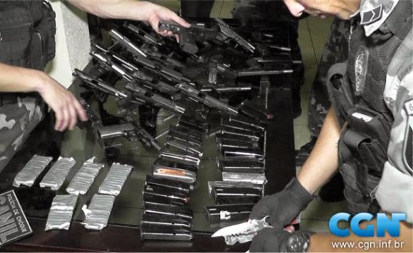 Foram apreendidas 26 pistolas '9 milímetros' e '.45', além de 50 carregadores e cerca de 200 munições de calibre 380 e '9 milímetros'. Com uma delas havia cerca de R$ 250 em dinheiro.