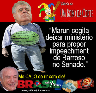 A gravidade é tanta que o poderoso ministro Carlos Marun até ameaçou ontem deixar a Secretaria de Governo da Presidência com a ameaça de retornar ao Senado para processar e pedir o impeachment do supremo-ministro Luís Roberto Barroso. O histriônico Marun acusa Barroso de “crime de responsabilidade”, em função da pressão que exerce contra Temer. A queda dele seria uma espécie de “contrapartida” para compensar a também inevitável detonação judicial de Luiz Inácio Lula da Silva – quase proibido de ser presidenciável porque está prestes a se tornar “presidiável”.
