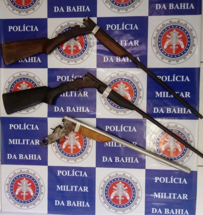 Os PMs apreenderam uma espingarda cal. 28, uma espingarda cal. 32, uma espingarda cal. 16, doze cartuchos cal. 16, quatro cartuchos cal. 28, sete cartuchos cal. 32 e uma luneta.