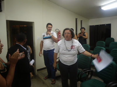 “terrorismo” da realização do concurso público. Em momento algum a APLB/SINDICATO declarou que não haveria concurso público. O referido vereador não conhece realmente a lei, ao dizer que a APLB não tem competência de questionar a respeito de valores equivocados na publicação do edital em relação à lei municipal (PCC – Plano de Cargos e Carreira). O fato é que os servidores não docentes não têm reajuste há dois anos. O vereador teve coragem de dizer que é a empresa que coloca o valor do salário de cada cargo. E ainda tentou burlar a pauta que fomos discutir, a exemplo das condições da falta de material pedagógico como cola para as crianças e computador para produzir tarefas para os alunos.